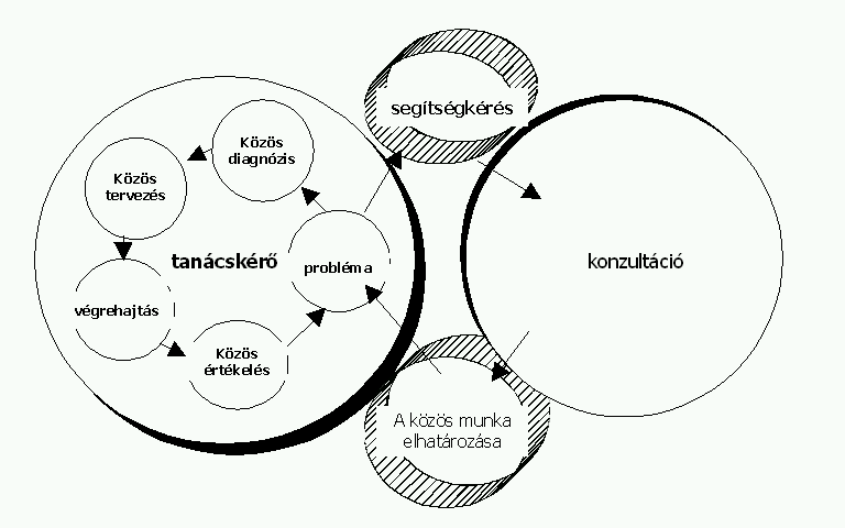 Az ábra azt mutatja, hogy ebben a modellben a legtöbb energiát magának a tanácskérőnek kell kifejtenie a helyzet megváltoztatása érdekében, ami persze nem ad felmentést a tanácsadó számára. A hangsúly az együttműködés "folyamat-jellegén" van, ami azt jelenti, hogy lényegesen visszafogottabb, indirektebb közreműködés képzelhető el ebben a fajta tanácsadói szerepben.