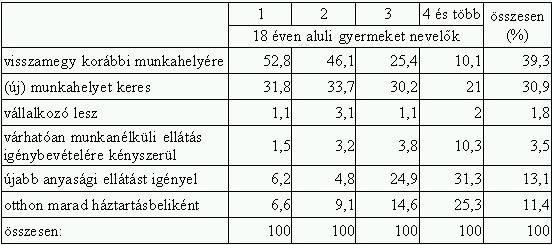 A gyermekgondozási ellátást igénybevevők megoszlása jövőre vonatkozó elképzeléseik (lehetőségeik) és a nevelt gyermekek száma szerint (2005.):